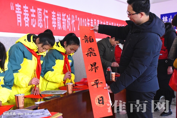 1月29日,寿县三中的小志愿者们不忘“朴厚三中 立德树人”的校训,在寿县客运站为旅客义务写春联,严寒阻挡不住孩子们奉献的激情,冻得通红的小手传递的是人间的温暖。(通讯员 季 娟)