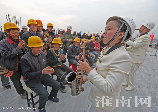 1月27日,在商合杭淮南站工地上,来自田家庵区洞山街道黎明社区的“文艺轻骑兵”为中铁上海局建设者送上了一台精彩的工地“春晚”,让他们感受第二故乡的温暖。据了解,为确保商合杭高铁按时交付使用,春节期间,将会有1000余名建设者坚守施工一线,保质、保量完成工程建设。(通讯员 尤恩奎 记者 倪 军 编辑 汤宁)