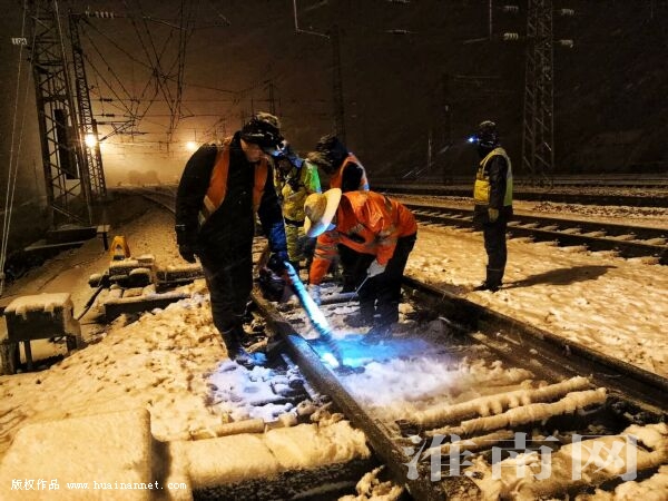 1月30日夜至31日凌晨,地处江淮腹地的淮南降下大雪。雪情就是命令,上海铁路局淮南西站立即启动预案,组织职工对道岔上的积雪进行清扫,保证春运旅客归途畅通无阻。(记者 张雪峰 通讯员 王神莹)