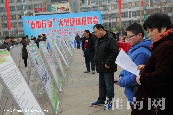 近日,凤台县举行2019年“春风行动”大型现场招聘会,来自县内外的60余家企业进场招聘,提供就业岗位2000余个,涉及制造、加工、餐饮、通信、鞋业、商贸服务、居家养老等30多个行业,初步达成就业意向280余人。该县此次招聘会旨在促进城乡劳动力转移就业,解决困难群众就业难题,帮助企业招工引才,助力扶贫攻坚。(通讯员 常开胜 李娟 编辑 汤宁)