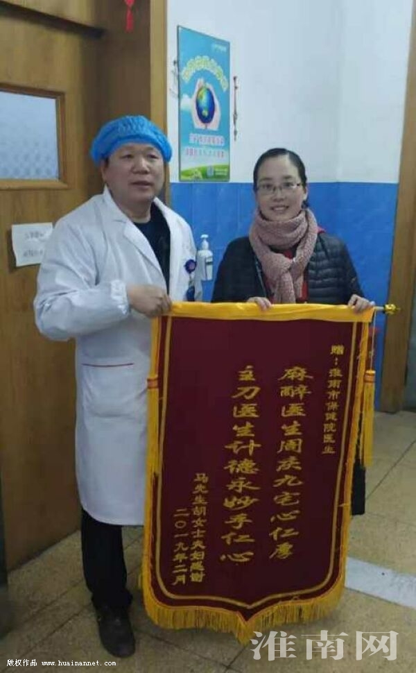 今年1月初,市妇幼保健院麻醉科副主任医师周庆九和产科主任计德永在接受孕产妇胡女士的咨询时,针对胡女士提出的手术痛苦以及对自己身体和新生儿的影响时,周庆九耐心对其解释关于自然分娩有禁忌的产妇,采取剖宫产手术是最好的办法。周庆九表示,剖宫产手术的麻醉方案一般都用连续硬膜外麻醉,该麻醉对产妇影响较小,且术中产妇处于清醒状态,孩子出生都能知道,并能听到孩子的哭声,体验当母亲的幸福感。同时,该麻醉方法对孩子影响小,但不排除也有部分麻醉效果不太理想,病人有疼痛或不舒适的感觉。此时,还可以用镇静镇痛药,让产妇处睡眠状态,感觉不到痛苦。周庆九说,现在的镇静药都比较安全,并且剂量少,影响不到产妇和孩子,更不会造成婴儿长大智力低下。经过两位专家的耐心解释,胡女士打消了心中的顾虑,决定采取剖宫产手术。当听到孩子出生的第一声啼哭,她激动不已,由衷地感谢市妇幼保健院医生技术好。就在不久前,胡女士夫妇还特意制作了一面写有“麻醉医生周庆九宅心仁厚,主刀医生计德永妙手仁心”的锦旗,交到了周庆九的手中,并再次表示感谢。