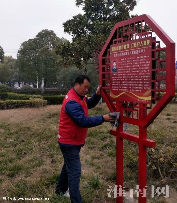 3月5日学习雷锋日,淮南义工联合会的义工们走上街头,用志愿精神在潘集区政府广场上清洗宣传栏、好人榜以及捡拾路边垃圾。(记者 罗静 编辑 汤宁)