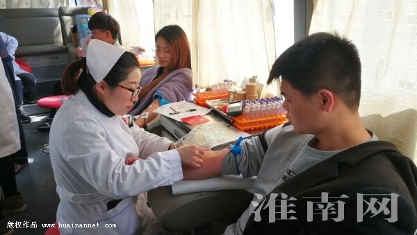 3月13日,淮南职业技术学院在学雷锋月开展“献血车进校园”活动,500余名同学加入献血者行列。在献血区,前来献血的同学们依次挽起袖管,坐在采血椅上,献出自己的青春热血,用真情传递爱心,积极支持公益献血事业。 (记者 陈海涛 编辑 汤宁)