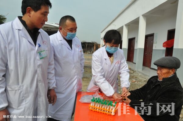 近日,凤台县古店乡组织乡卫生院医护人员,走进乡养老服务中心,为老人开展听诊、肝胆B超、心电图等免费检查,指导老人日常保健和正确用药知识。图为乡卫生院医生免费为老人采集血样。(通讯员 宋涛 记者 朱庆磊 编辑 汤宁)