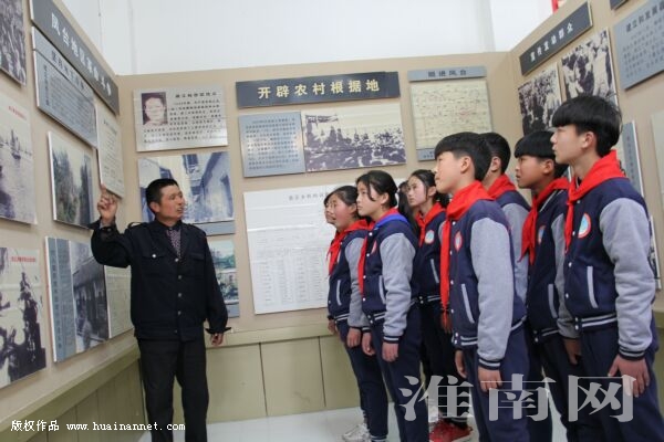 3月29日,凤台县板张集革命烈士陵园第二代守墓人李学成在向丁集镇张集小学学生讲解英烈故事。板张集革命烈士陵园是省市爱国主义教育基地,每年清明节,陵园都要接待数以万计的扫墓和瞻仰者,李学成主动担当义务讲解员。(通讯员 常开胜)