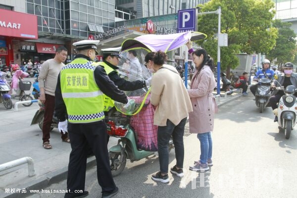 为确保辖区道路交通安全、有序、畅通,4月3日下午,田家庵交警一大队全员出动对商贸文化广场、林场路等周边道路机动车、非机动车行车秩序加强管理,强力整治非机动车闯红灯、不按规定车道行驶等交通违法行为,全力打造路畅民安的道路交通环境。图为在交警指挥下,市民配合拆除非机动车遮阳棚。(记者 李东华 通讯员 吴喆敏 编辑 汤宁)