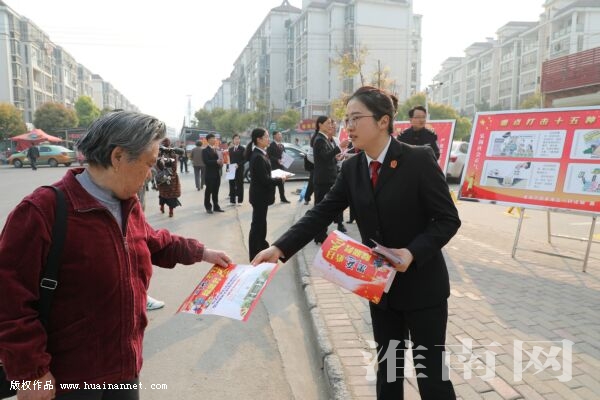 日前,市中级人民法院和田家庵区法院联合开展扫黑除恶专项斗争宣传进社区、进集市活动,20余名干警参加活动,共摆放展板4个、发放宣传手册2000份,进一步提高了群众对扫黑除恶专项斗争的知晓率、参与率,为打赢扫黑除恶专项斗争营造浓厚氛围。图为两院干警向社区居民发放宣传手册,讲解扫黑除恶相关知识。(通讯员 李旭东 编辑 汤宁)