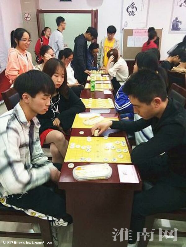 当天上午,在市工人文化宫,人头攒动,选手云集,安徽理工大学等淮南市5所高校近60名大学生分别参加了男子象棋、女子象棋、五子棋和围棋四个棋类比赛的角逐。
