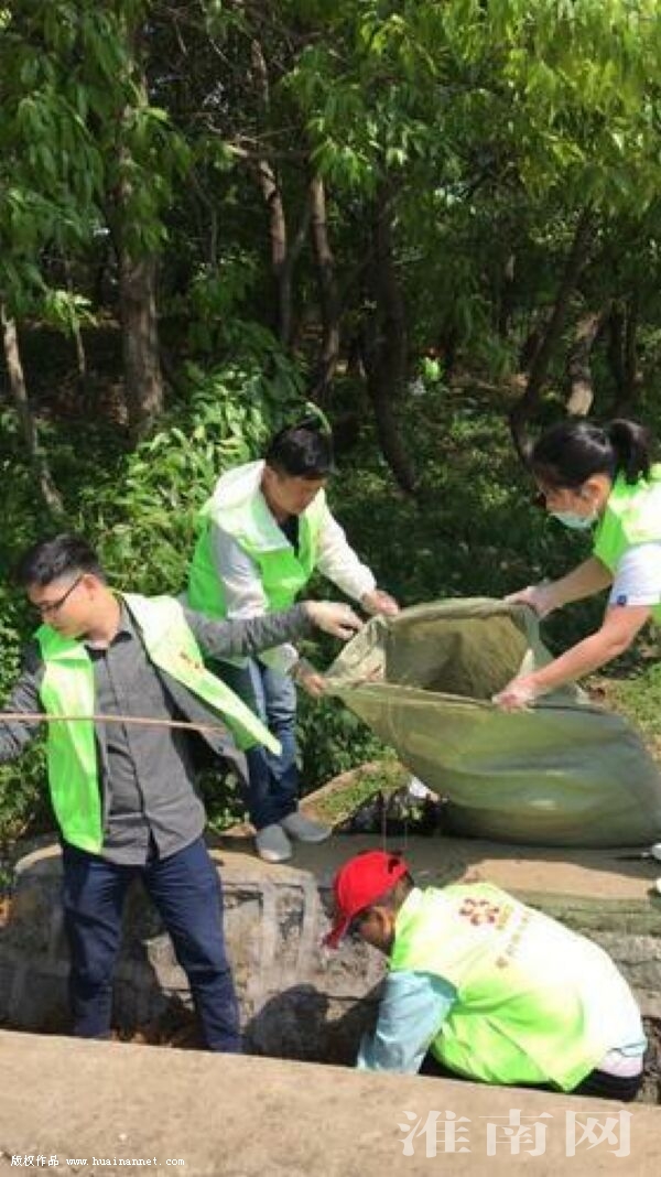 “五四”青年节这天,淮南帮忙团的青年志愿者自带各种工具,来到舜耕山风景区捡拾路边、花草间、沟渠内的垃圾。