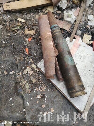 5月9日下午,在大通区居仁村附近一处门面房里,一枚未爆炸的军用炸弹随着房主拆除房屋时重见天日。
