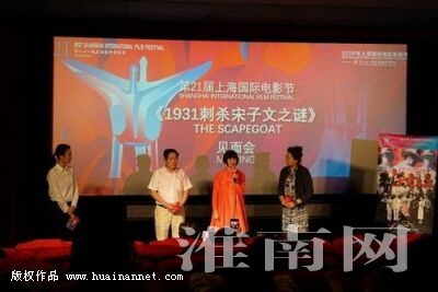 图二:在第21届上海国际电影节上,导演韩晶(左三)与郑抱真的小女儿郑清(左四)和王亚樵的嫡孙王家柱(左二),共同出席了映后见面会。(记者 廖凌云 编辑 汤宁)