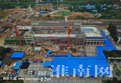 5月18日,鸟瞰淮南火车站站房改造工程建设现场。目前,站房主体结构浇筑全部完成,正在进行钢结构屋顶施工;南北通道基坑开挖全部完成,箱身完成55%;站台加高工程进展迅速,老雨棚拆除完成,站台混凝土浇筑完成70%。据了解,淮南站改造工程正按计划有条不紊快速推进。(记者 倪 军 陈海涛 编辑 汤宁)