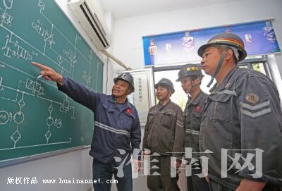 图八:在戚向男工作室里,他正向青年职工讲解监测监控全自动化控制装置全套理论知识