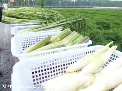 图:以沼液有机肥培育的水生蔬菜水芹、茭白和空心菜
