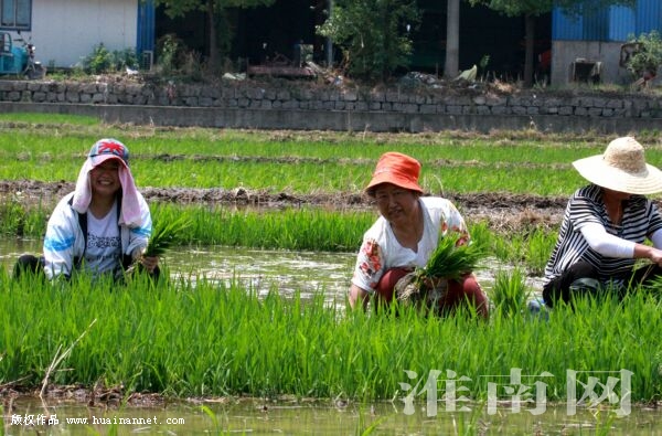 6月12日,淮南农民抢抓农时插秧,田间地头处处可看到农户们给稻田灌水、翻地、育秧、插秧的场景。图为大通区洛河镇王庄村村民抢栽、抢种,确保今年水稻秧苗按时完成栽种。 (记者 陈海涛 编辑 汤宁)