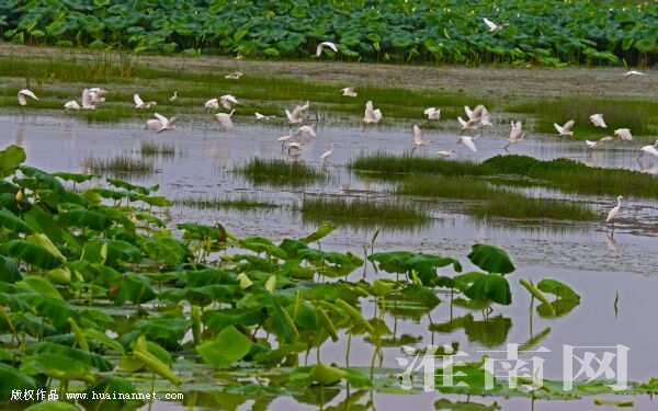 盛夏时节,成群白鹭在大通区孔店乡蔡城塘飞舞嬉戏。近年来,我市加大湿地保护力度,生态环境不断改善,市民爱鸟护鸟意识逐渐提高,越来越多的鹭鸟长期栖息在蔡城塘,成为当地一道生态美景。(记者 倪军 编辑 汤宁)