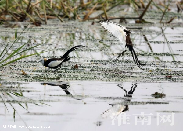 7月15日,数只“凌波仙子”水雉在焦岗湖的荷花塘、芦苇荡中栖息嬉戏。近年来,焦岗湖国家湿地公园致力于环境生态保护,成为数十种珍稀鸟类的快乐家园。(记者 张越 编辑 汤宁)