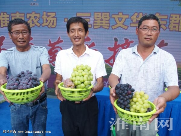 8月18日,淮南农场首届葡萄采摘节举行,果农们现场展示丰收成果、分享丰收喜悦。