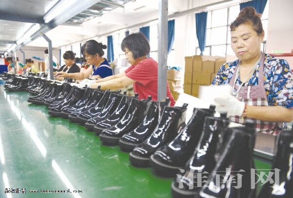 近日,位于八公山区外贸出口产业园的安徽鑫溯鞋业有限公司生产车间内,工人们在生产出口欧洲的鞋品。该园区引进11家配套材料生产企业,形成上下游产业链,为欧美一线品牌生产各类鞋品,同时为省内外临近制鞋企业提供配套辅料。园区年产1400万双鞋,带动当地2000余人就业。(通讯员 怀 轩)
