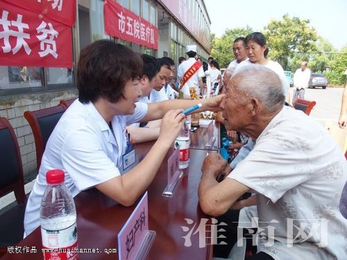 当日清晨,由各乡镇组织的贫困户乘车陆续来到高皇镇政府所在地。高皇镇政府大院内,则摆开了一长溜义诊台,40多位来自蚌医二附院、北方医院和市五院的医生为受诊贫困户量血压、测血糖及进行各科检查,把党和政府的关怀送到贫困户心坎上。