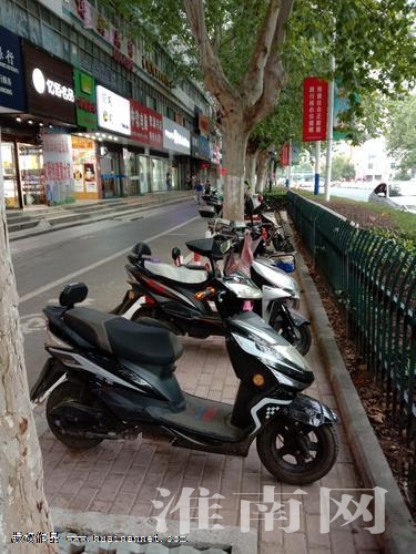 在淮河大道西边,有一段约700米长的人行道,该段人行道南起华声嘉苑临时菜场,北至朝阳中路。由于该路段西边各种商铺云集,又毗邻菜市场、一中、田区十六小,每日里电动车、自行车、行人流量较大,加之人行道宽度有限,受阻不畅的问题时常发生。特别是早中晚学生上学放学,市民上下班时段,电动车、自行车、行人便在这段狭窄的通道上相互拥挤。尤其是对于电动车、自行车骑行者而言,要想在此找个停车位,可谓是难上加难。