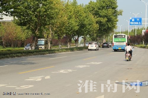 图:淮潘公路这一段公交专用车道其他车辆限时禁入