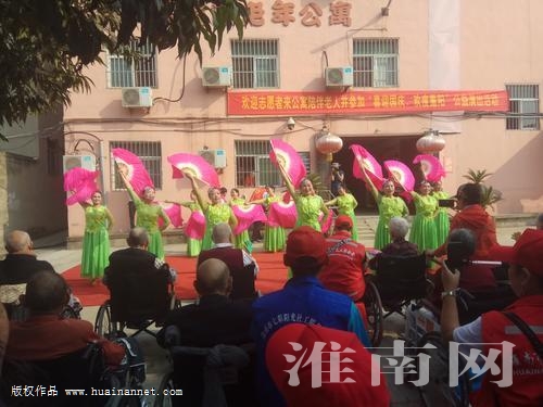 (记者 孙鸿)品茗,吃糕点,欣赏着精彩节目……9月28日,大通区桃园居老年公寓的百名高龄长寿老人在淮南市义工联合会、淮南师范学院青年公益社等学校、社区、艺术团体志愿者的陪伴下,提前度过了一个热闹、温馨的重阳佳节。
