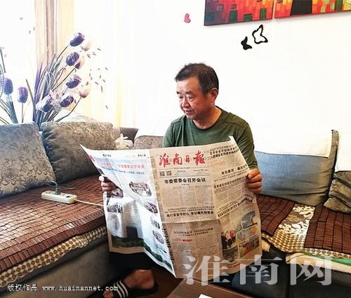 10月13日,在银鹭社区工作人员的带领下,淮河早报、淮南网记者来到了金多富老人的住处,只见他正在翻阅《淮南日报》,见到客人来访,金老热情地招待客人就座。当询问起作为一名共和国同龄人,对新中国成立70周年有何感想时,金老激动起来。他说:“在祖国的关怀、党的领导培养下,我由一个孱弱、胆怯的孩子,成长为一名自强、自立的共产党员,如果没有新中国,就没有我今天的幸福的生活。”
