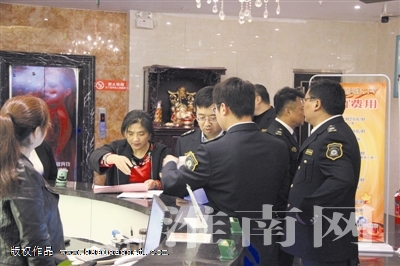 当晚7时许,执法检查组首先来到了位于国庆路与淮河大道交叉口附近的一家大型KTV。在出示身份后,执法检查组兵分两路,一路指导店方将“安全经营 守法经营 拒毒拒黄 扫黑除恶”的警示标语张贴于大厅醒目位置,一路前往KTV走廊、包厢检查消防安全设施,以及消防通道的畅通与否。随后,执法检查组又步行来到位于国庆路的另外3家大型KTV进行检查和宣传。检查中,4家KTV证照齐全,各类消防设施也比较齐备,但执法检查组在包厢检查与问询中对店家提出了更高的要求,要求其保洁人员在清扫时一定要注意防火等细节。其后,执法检查组又对广场路、金家岭路、朝阳路、学院路等繁华路段的6家KTV进行了突击检查与宣传教育,整个夜查行动一直持续到晚间9时许才结束。