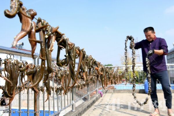 近日,八公山区山王镇林场村村民养殖中药材水蛭巧增收。该村土地资源较少,村里党员致富能手带头学习水蛭养殖技术,带领群众通过中药材水蛭养殖增加收入,每亩水蛭养殖收入达到3万元左右。(通讯员 陈 彬 施雅雯)