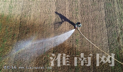 10月31日,寿县正阳关农场农民忙着抗旱保苗。今年1至10月,寿县降雨量只有396.9毫米,仅是正常年份的四成。该县为保障居民生活用水和农业抗旱用水,投入25万人,泵站500处,机动抗旱设备11.36万台套。(记者 倪 军 陈海涛)