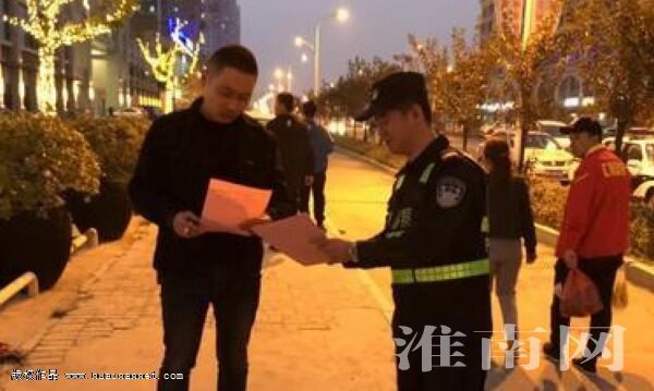 11月7日晚,山南工作组共出动公安民(辅)警、城管行政执法人员、文明办、农业、乡镇、街道、社区、物业等单位工作人员、志愿者共计16余人,出动执法、宣传车辆1辆,不间断播放《淮南市人民政府关于规范城区养犬管理的通告》全文内容,走访金域蓝湾、伴山家园小区等场所2处,发放文明养犬宣传资料80余份,养犬市民现场签署《文明养犬承诺书》2份,劝导市民遛狗不拴犬绳等不文明养犬行为5次。