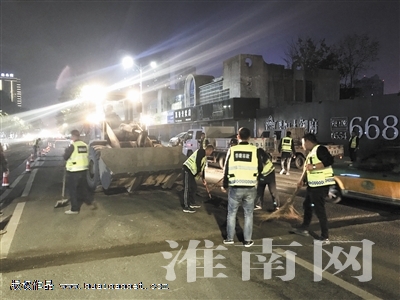 由于淮河大道是我市主要道路,平时车流量较大,如果白天施工势必会对道路交通带来影响,影响市民出行。为了缓解道路交通压力,市政园林建设处领导要求在夜间车流量少的时段进行施工,减轻道路施工对交通通行的影响。华康市政公司组织10余台施工机械,近20名施工人员,对坑洼的近千平方米路面进行铣刨之后再重新铺设,预计两个整夜可以全部完成路面维修工作。