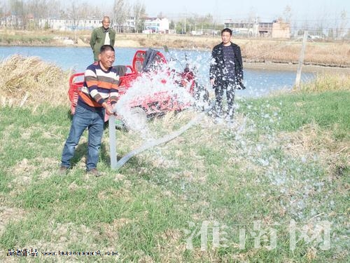 史圩村委会负责人介绍,受捐助的这18台套水泵设备,将优先发放给生产大户和贫困户,抗旱保苗,保障粮食生产。捐赠活动后,淮河早报、淮南网记者随领到水泵的贫困户来到地头,只见他们连接上配套的水管,把直流电泵接到电动三轮车的电瓶上,打开开关,只见汩汩清水奔涌而出,干渴的田地得以浇灌,农户的心头乐开了花。