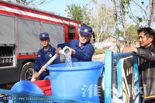 今年入秋以来,我市发生伏秋连旱天气,高新区三和镇徐马村因地处偏远,安全饮水工程还在建设当中,当地几百户村民出现了饮用水困难的情况。市消防救援部门连日来每天派出两次消防车,为村民送生活用水。(通讯员 田永军)