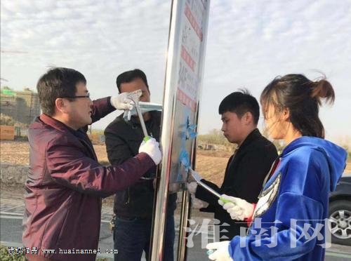 公交员工带着小铲子、刷子、抹布等工具,对市区多条道路上的公交站台进行清洁维护,对存在的各类小广告进行逐一清理。