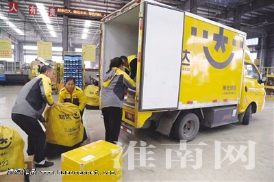 11月26日,淮南快递物流产业园内一片忙碌景象。近年来,大通区深入践行新发展理念,积极发展物流产业,打造了发展新引擎。目前,淮南快递物流产业园已有8家快递企业、3家物流企业和1家仓储一体化企业入驻,中国邮政电商仓储配送中心项目一期全面建成投用。(记者 朱庆磊)