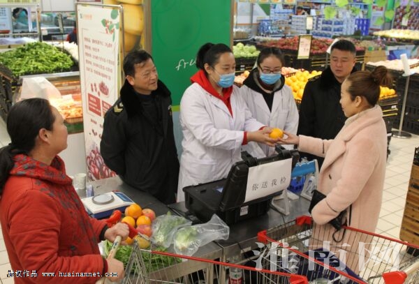 12月2日,谢家集区市场监督管理局为提升公众对食品安全的参与度和感知度,让食品安全走进社区走进百姓,开展“你点我检”、“你送我检”活动。对蔬菜、水果、肉类、水产品等农副产品实施农药残留及农药专项整治行动。重点对农贸市场、超市等流通环节开展农药产品质量监督抽查,免费为广大市民检测各类食用农产品以增强人民群众的获得感、幸福感,安全感。图为食品安全快速检测活动吸引了众多买菜市民的积极参与。(记者 陈海涛)