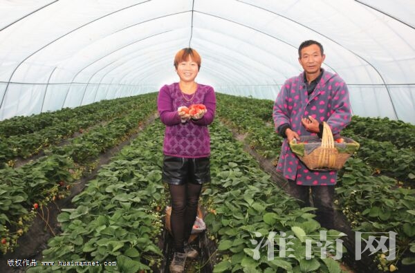 12月16日,大通区孔店乡河沿村村民闫兴成家8亩草莓喜获丰收。眼下,河沿村1100亩草莓陆续成熟上市,畅销淮南、合肥等地市场,市场批发价每公斤约30元,每亩草莓纯收益约2万元。 (通讯员 潘雪洁 记者 朱庆磊)