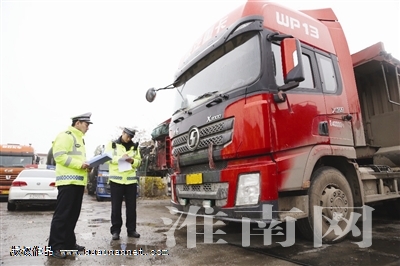 淮河早报、淮南网记者连日来多次走访民警执法现场。12月17日下午,在洛河镇206国道沿线一侧的一维修厂内,民警冒雨查获了两辆车牌污损的大货车,民警当即向车主下达了通知书,要求其七个工作日内必须到车辆管理部门更换新的车牌。