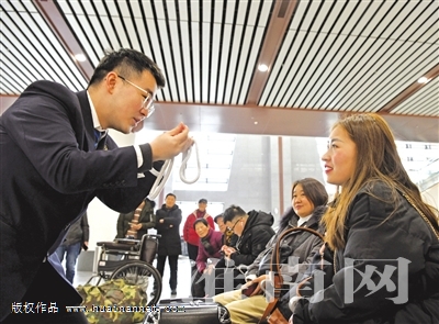 1月19日,中国铁路上海局集团有限公司淮南西站党员职工吴硕(左)在新开通的寿县站表演魔术为旅客送去欢乐。春运启动以来,中国铁路上海局集团有限公司淮南西站组织党团员走进车站,开展书写春联、文艺表演等志愿服务,努力实现“平安春运、有序春运、温馨春运”目标。(通讯员 王神莹 怀轩)