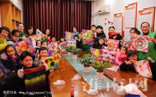 1月20日下午,田家庵区树苗爱心协会的志愿者走进洞山街道中兴社区新时代文明实践站开展传统文化魅力扎染关爱未成年人志愿服务活动,带领放寒假的孩子们体验有着1200年历史的白族非遗——扎染。