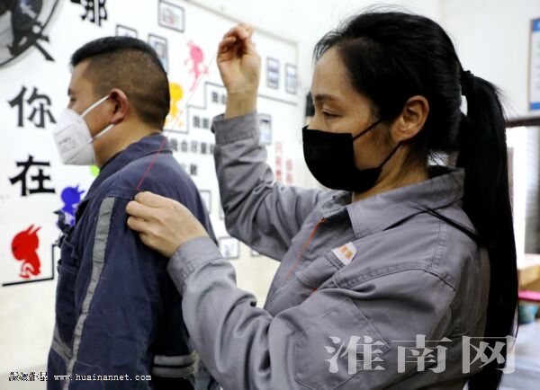 中煤新集口孜东矿组织女职工开展“真情服务送温暖”活动,为返岗复工职工修补工作服、清洗床单、被罩等。图为女工协管员为职工缝补衣服。(通讯员 刘家福 高 闯 )