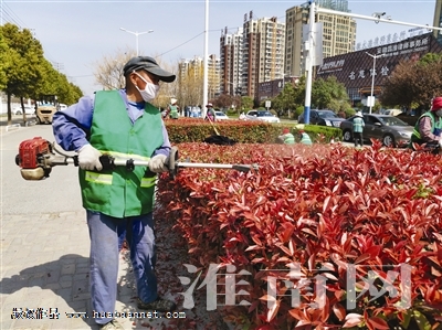 修枝除草、补株施肥,3月21日园林工人一大早赶到广场路展开绿化作业,将道路两侧的绿化带修剪一新。据悉,春季是园林养护花木修植的黄金时节,为了让市容市貌更加靓丽,园林工人们抢春时,每天早晨7时左右便赶到作业路段开展作业,直到傍晚才收工,平均每天工作9个小时以上。(记者 苏国义)