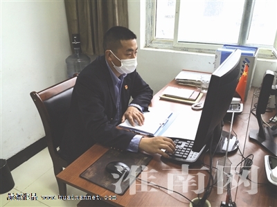 图为李广山在填报职工防疫信息。(记者 张雪峰 通讯员 王振亚)