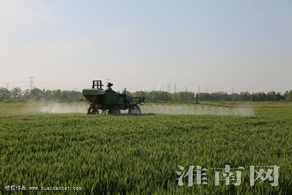 4月16日,淮南农场公司职工驾驶农机给小麦喷洒混配剂。4月中旬以来,淮南农场小麦陆续进入抽穗扬花期,农场职工们抢抓农时进行小麦防病虫、防干热风、防倒伏的“一喷三防”作业,推进科学防控,保障小麦质量,促进稳粮增收和农业提质增效。 (记者 吴巍)