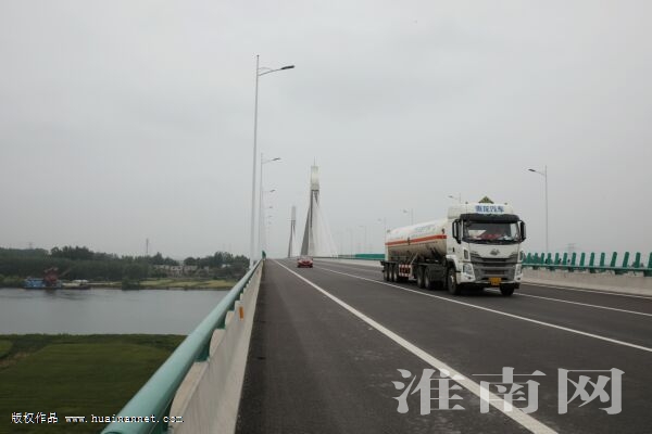 4月28日,连接淮南淮河两岸的又一座高等级大桥——淮上淮河公路大桥正式通车。该桥路线全长19.8公里,起于国庆东路,终于S225省道。其中跨河主桥长3.12公里、南岸引线长1.08公里、北岸引桥长7.02公里、北岸引线长8.61公里,主桥为双索面斜拉桥,桥面宽32米。全线为双向六车道,一级公路标准建设,设计时速80公里。(记者 张越)
