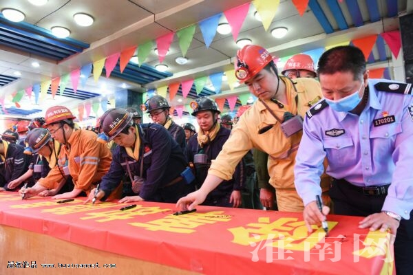 在全国开展第十九个“安全生产月”活动之际,中煤新集二矿在副井口举行“安全生产月”活动启动仪式,旨在推进企业安全生产工作协调,完善职工互助联保安全管理机制,促进企业安全稳定发展。图为现场参加活动人员在“消除事故隐患 筑牢安全防线”条幅上签字。 (通讯员 赵军磊 方刚)
