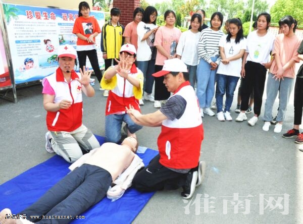 6月8日,凤台县红十字会组织志愿者前往朱马店镇肖集中学,开展以“珍爱生命、防范溺水”为主题的防溺水安全教育和救护演练活动,让师生掌握正确的救护要领,提高了师生的防溺水意识和救护能力。(记者 朱庆磊 通讯员 田文体)