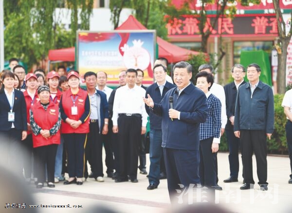 图二:6月8日至10日,中共中央总书记、国家主席、中央军委主席习近平在宁夏考察。这是6月8日下午,习近平在吴忠市利通区金花园社区广场,同居民们亲切交流。 新华社 发